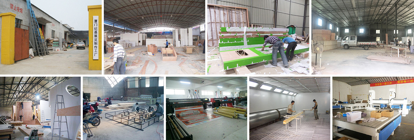 公司目前在厦门拥有近5000平米的施工制作厂房和多支专业的施工队伍,业务范围能直接辐射华南、华中、华北及西部地区;在国内大中城市如北京、上海、广州、深圳、南京、武汉、成都、重庆等展览发达地区拥有稳定、优质的合作伙伴,能为客户提供异地域、多地域的搭建服务。